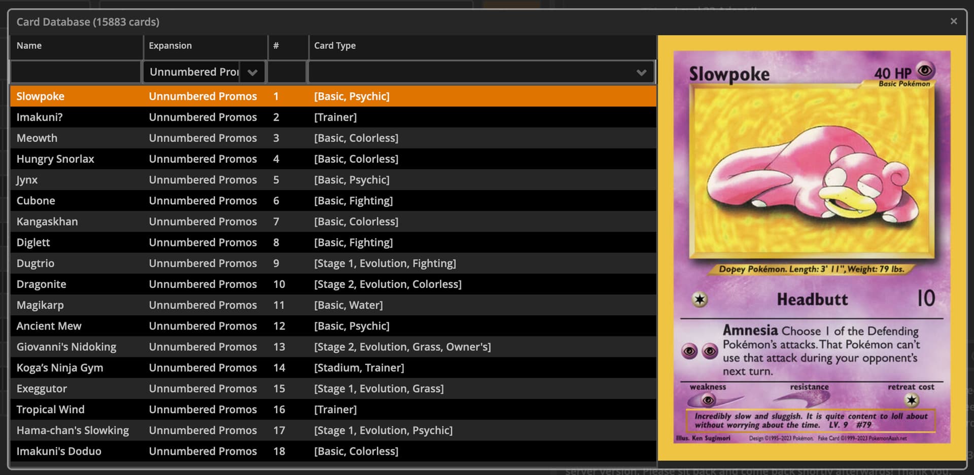 Also, all the japanese promos have been added into the in game card database. Select “unnumbered promos” in the expansion combo to see them. A few of them are missing though.