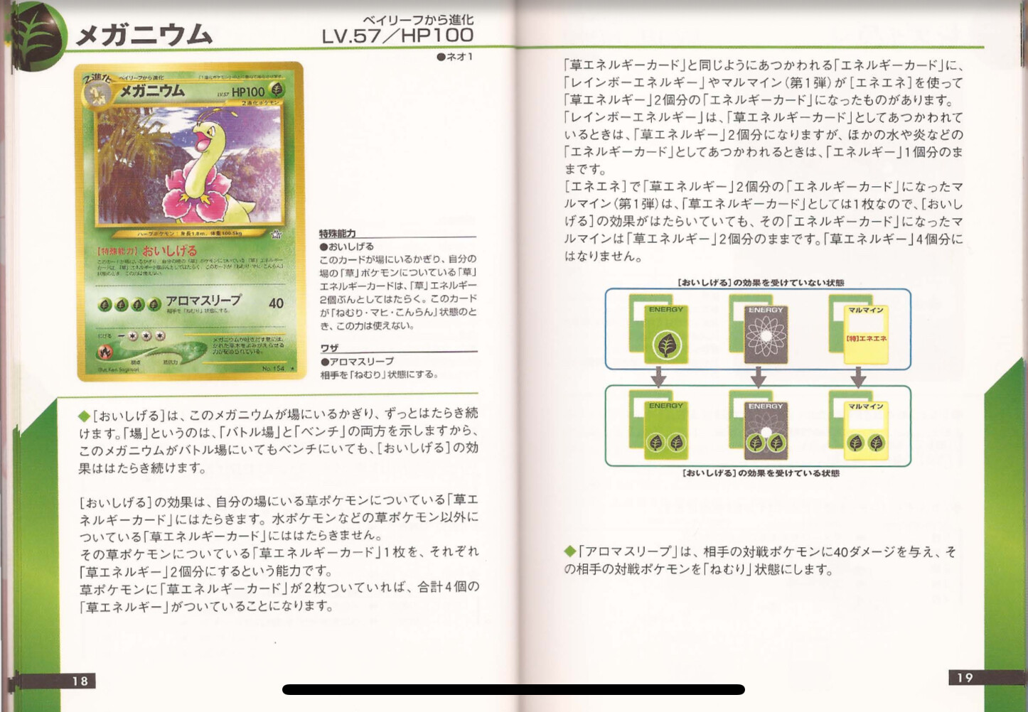 May I ask where you got that Meganium text from? It’s not what’s on the card, nor is it what’s in the Neo 1 Handy Guide. There’s no mention of Basic Energy there. Furthermore, the aforementioned guide has a page that explains exactly how Meganium works with Rainbow Energy.